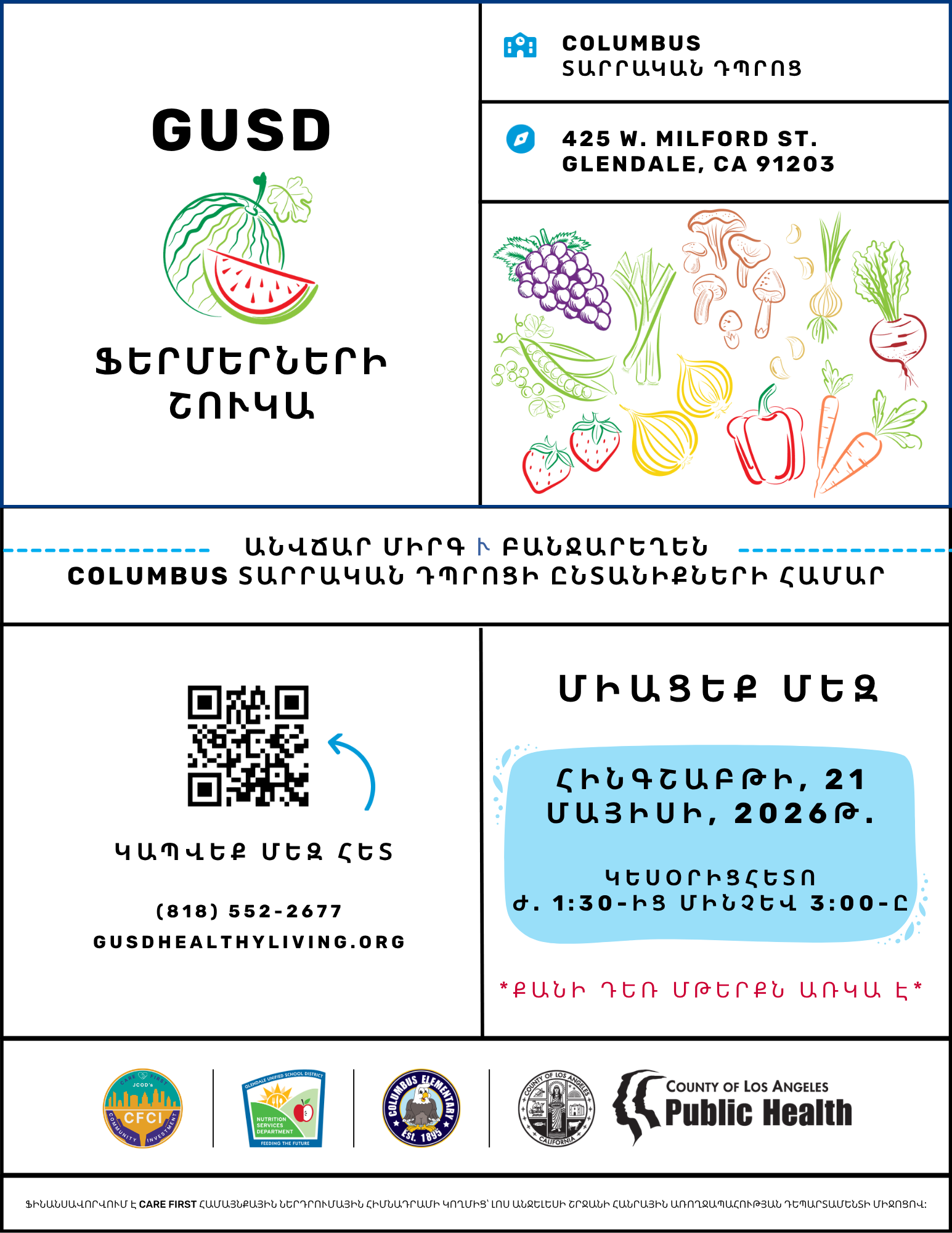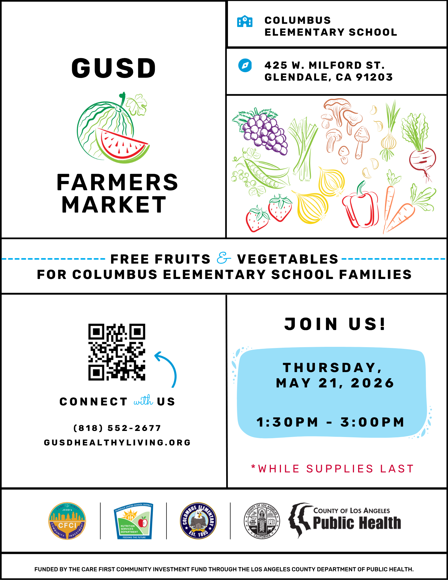 Stop by our farmers market style produce distribution for a great selection of free fruits and vegetables, healthy recipe cards, and other nutrition resources. This event will take place on campus near the main entrance.